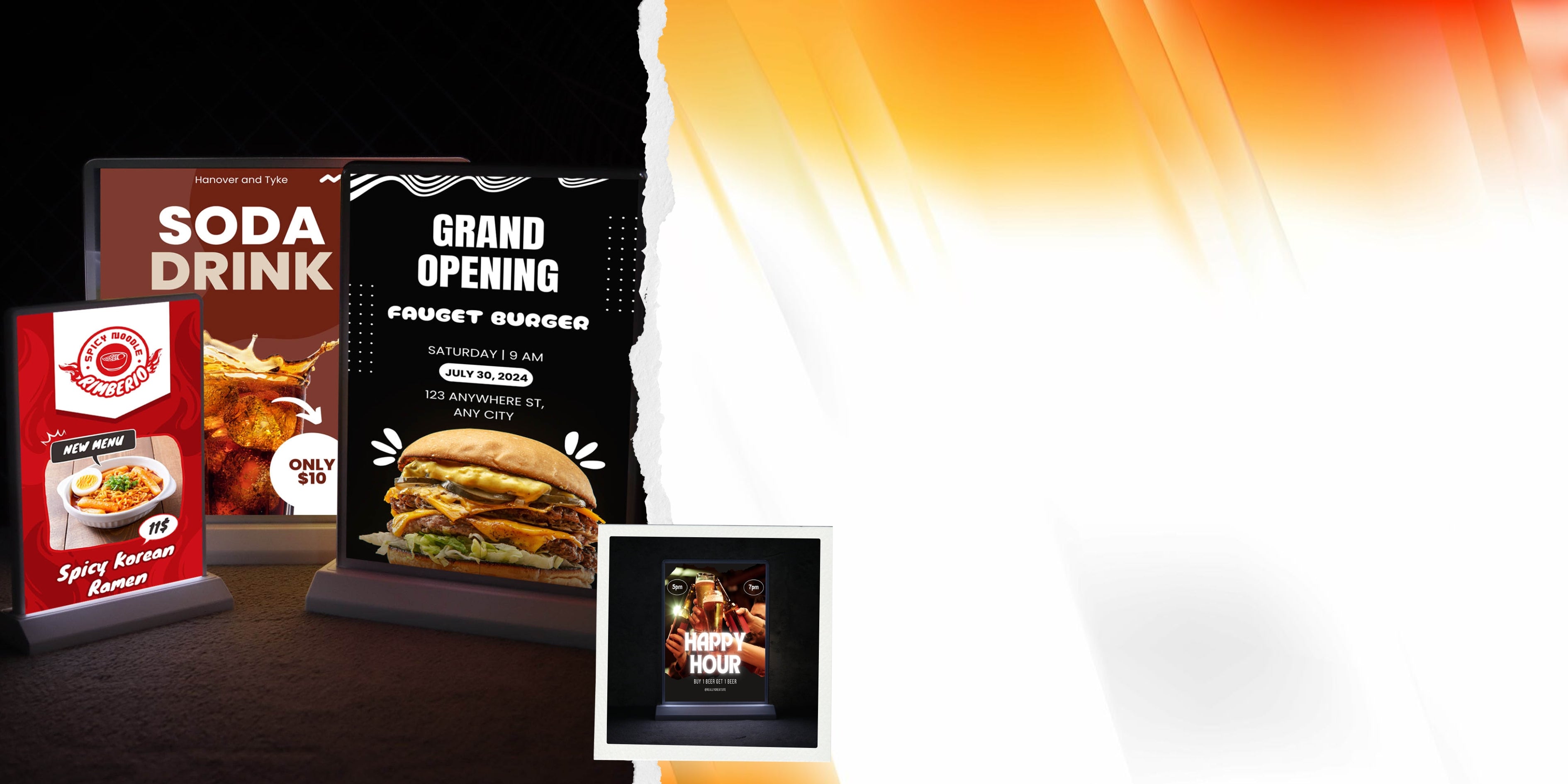 Eyecatching Werbung - ganz ohne Kabel! Zweiseitig, wiederaufladbar und bereit, alle Blicke auf sich zu ziehen. Perfekt für Theken, Tische und mehr.