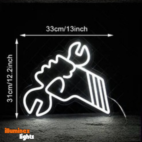 Schlicht, stark und stylisch: Dieses LED-Neon Sign zeigt eine Hand mit einem Schraubenschlüsseln – das ultimative Symbol für Handwerk, DIY-Spirit oder Autowerkstätten.